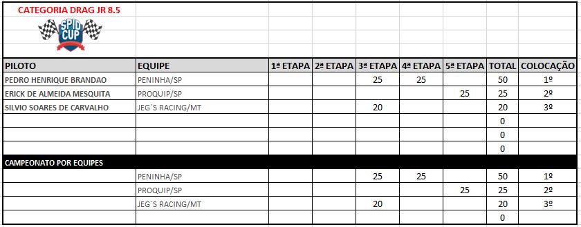 Regulamento Técnico categoria Drag Junior 8,5 e 10,5 (DJ 8,5 e 10,5)