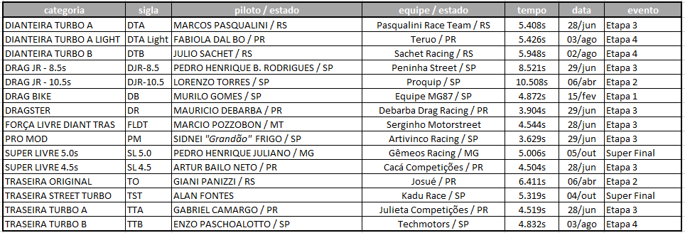 - O recorde considera somente tempo de pista em percurso de 201 metros, não sendo considerado o tempo de reação do piloto.