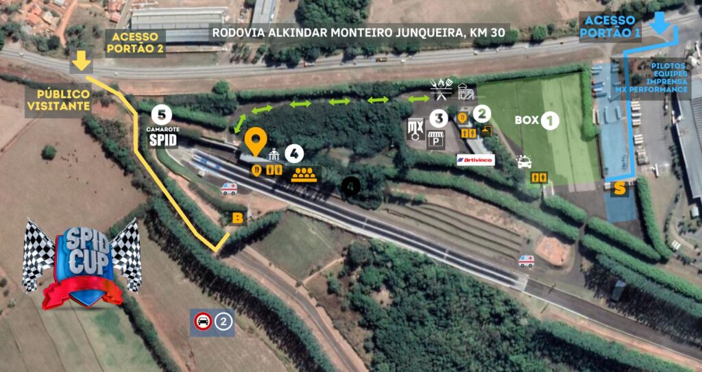 ACESSO PORTÃO 1 – pilotos / equipes / estacionamento box R$80,00 período por dia